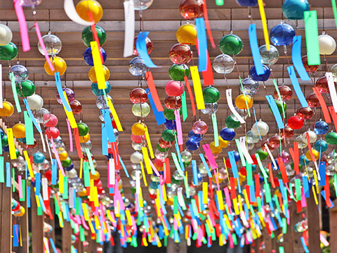 山門から本堂へと続く「風鈴の小道」には、約2,000個の色とりどりの風鈴が揺れ、心洗われる参道を演出。 枯山水の庭園には「富士山風鈴」のオブジェが登場します。