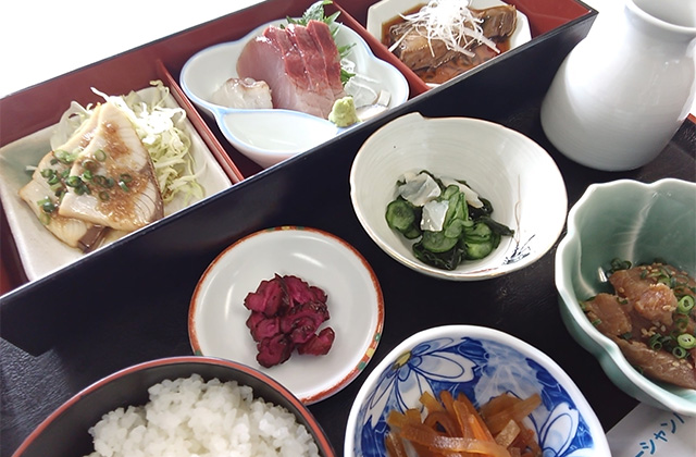 道の駅内にあるレストランにて、太平洋を見渡しながら地元の新鮮な食材を使った海鮮定食をいただきます。