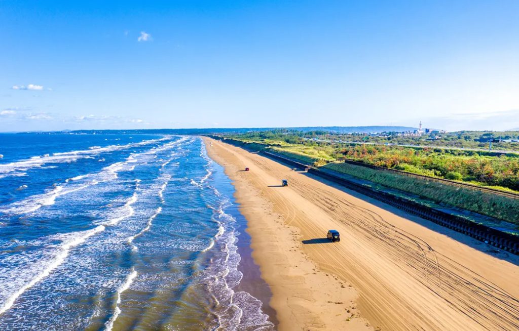 日本で唯一、車で砂浜を走ることができる海岸道路!波打ち際すぐそばを走る爽快なドライブは、ここでしか味わえない特別な体験です。