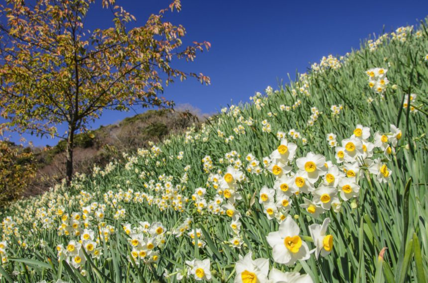 鋸南町は越前、淡路とならぶ日本の水仙三大生産地で、をくづれ水仙郷は、同じ鋸南町にある「江月水仙ロード」と並ぶ、鋸南町の水仙の名所です。